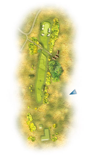A semi-blind drive to a narrowing fairway traversed by a ridge, leaves a second shot to a green protected by six bunkers.