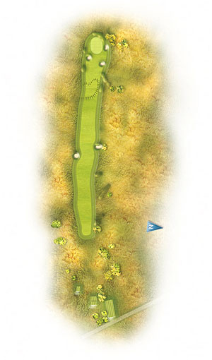 A demanding par 4 usually into the wind. The line for the tee shot is the tunnel entrance in the distance, for the second shot avoid the greenside bunkers by playing long.